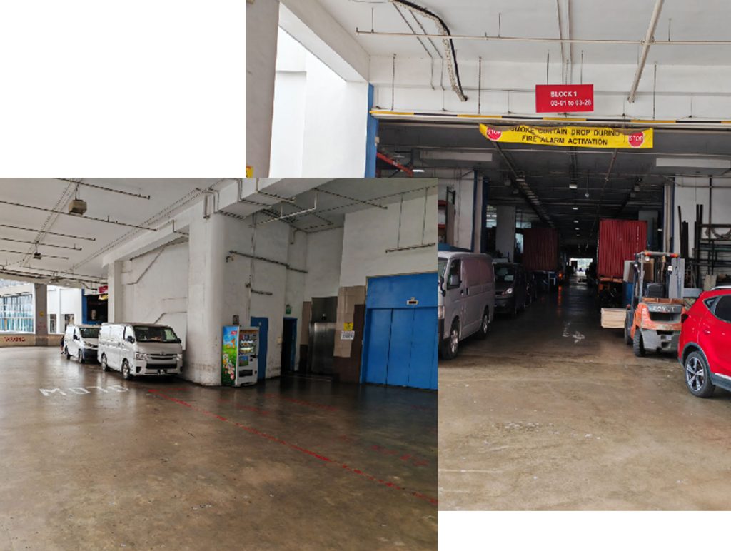 Upon arriving to 5th floor, go out lift and take a right turn, you will see entrance to a red sign Block 1, 05-01 to 05-28. Take a walk through to the other end.